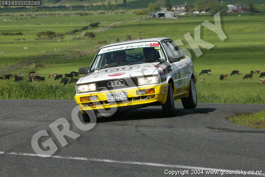 Car No: 509 Trevor Taylor and Stewart Taylor - Audi 90 Quattro - Dunlop Targa New Zealand 2004 - Special Stage 1