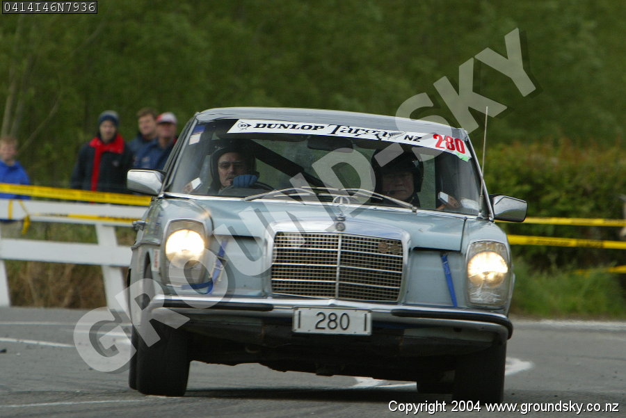 Car No: 280 Ken Williams and Xeno Captain - Mercedes Benz 280 E - Dunlop Targa New Zealand 2004 - Special Stage 46