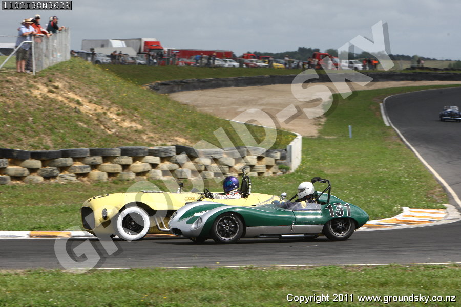 Car No: 131 Roger Ealand - Lola Mk1 - Car No: 70 Ernie Nagamatsu - Buick Old Yeller II Special - NZ Festival of Motor Racing Week 2 - Early Historics & Sports Racing