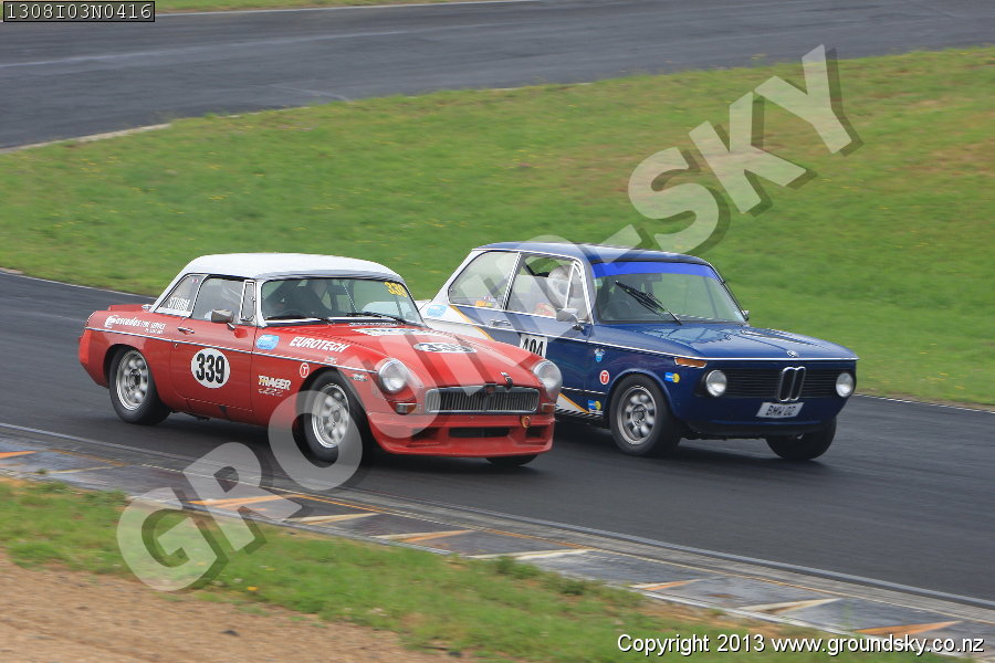 Car No: 339 Tony Sturm - MG MGB Roadster - Car No: 404 Andy Wallace - BMW 2002 Tii - Outsource IT Christmas at the Downs - AES-Tradezone