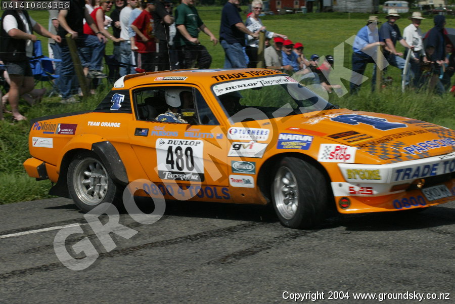Car No: 480 Mark Parsons and Leanne Willets - Triumph TR7 V8 - Dunlop Targa New Zealand 2004 - Special Stage 6