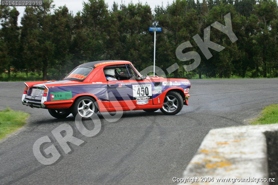 Car No: 450 Jonathan Hills and Elise Neville - Triumph Herald RV8 - Dunlop Targa New Zealand 2004 - Special Stage 17