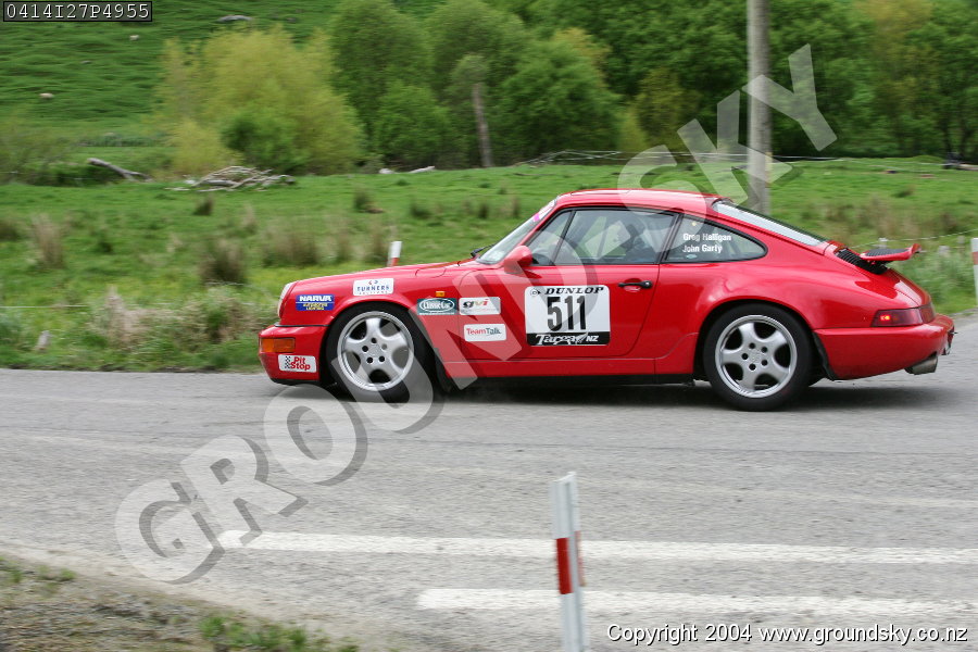 Car No: 511 Greg Halligan and John Garty - Porsche 911(964) ('89-93) Carrera 2 - Dunlop Targa New Zealand 2004 - Special Stage 27