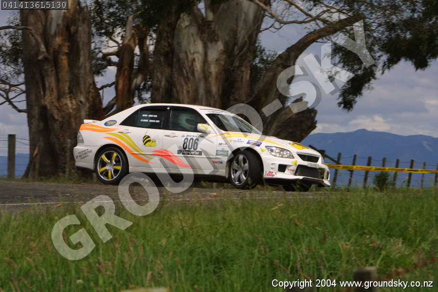 Car No: 806 Derek Cecil and Rebecca Cecil - Toyota Altezza - Dunlop Targa New Zealand 2004 - Special Stage 36