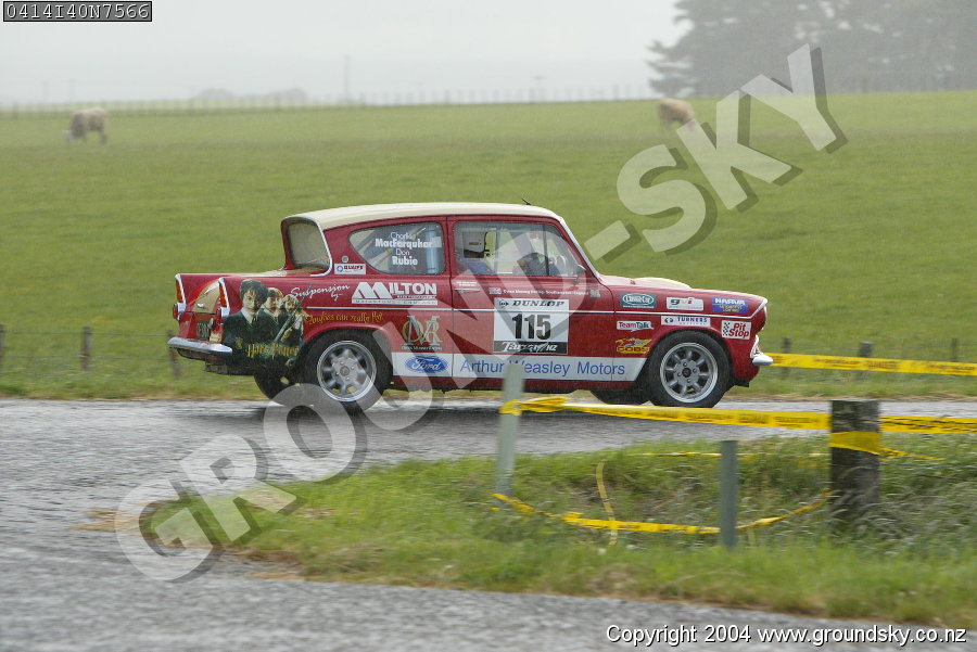 Car No: 115 Don Rubie and Charlie Macfarquhar - Ford Anglia 105E - Dunlop Targa New Zealand 2004 - Special Stage 40