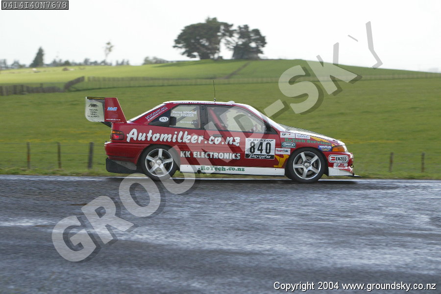 Car No: 840 Kevin Fisher and Warren Hopkins - Ford Laser GTX - Dunlop Targa New Zealand 2004 - Special Stage 40
