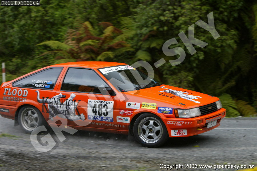 Car No: 483 Duane Joubert and Sue Prance - Toyota Sprinter AE83 - Dunlop Targa New Zealand 2006 - Special Stage 6