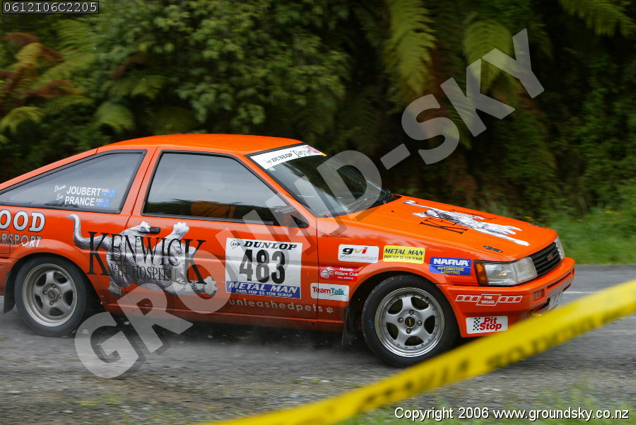 Car No: 483 Duane Joubert and Sue Prance - Toyota Sprinter AE83 - Dunlop Targa New Zealand 2006 - Special Stage 6