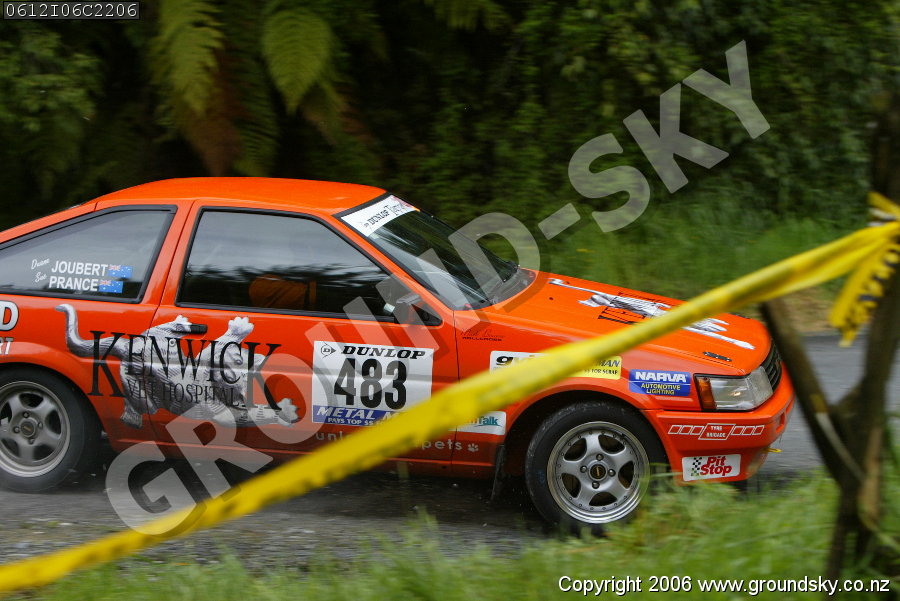 Car No: 483 Duane Joubert and Sue Prance - Toyota Sprinter AE83 - Dunlop Targa New Zealand 2006 - Special Stage 6