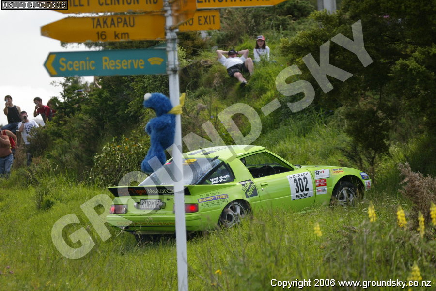 Car No: 302 Shane Walden and Mark Bell - Mazda RX7 Series 1-3 (SA/FB) - Dunlop Targa New Zealand 2006 - Special Stage 42