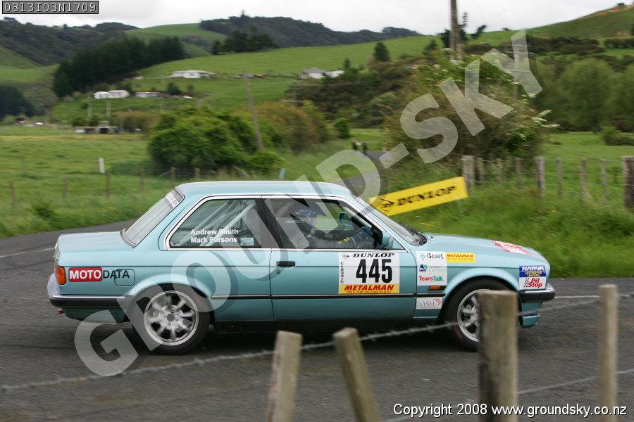 Car No: 445 Andrew Smith and Mark Parsons - BMW 325 E30 ('84-94) - Targa New Zealand 2008 - Special Stage 3