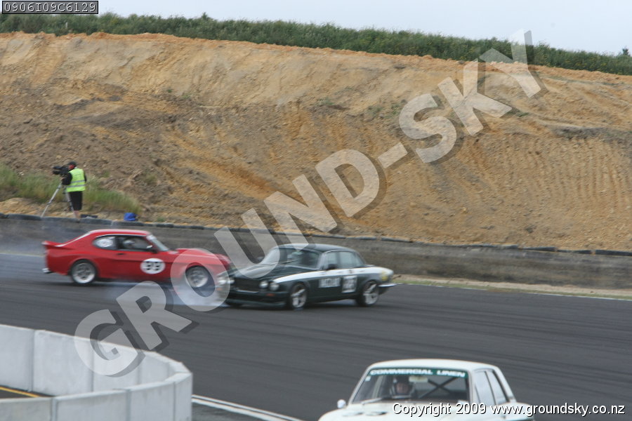 Car No: 23 Rob Moston - Jaguar XJ6 - Car No: 99 Ron Findlay - Ford Capri Perana - Monza Hampton Downs - Arrow Wheels Sports & GT Challenge