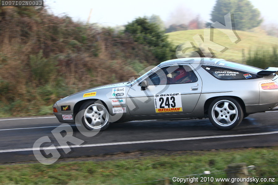 Car No: 243 John Dolphin and Craig Davies - Porsche 928 - Targa Rotorua 2010 - Special Stage 2