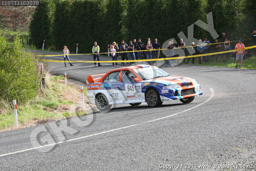 Car No: 945 Glenn Inkster and Spencer Winn - Mitsubishi Lancer Evo 6 - Targa Rotorua 2011 - Special Stage 11
