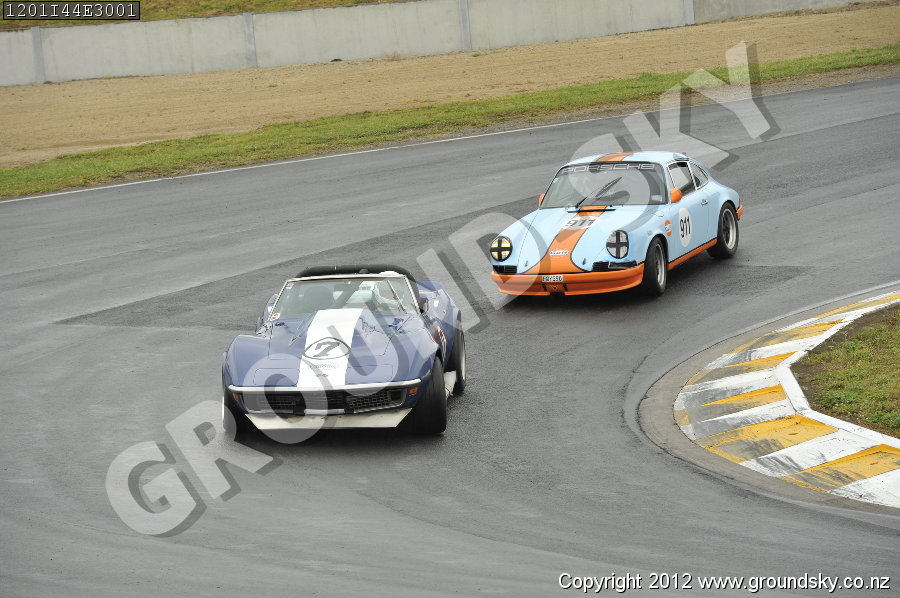 Car No: 7 Tony Roberts - Chevrolet Corvette Stingray - Car No: 911 Stephen Rasmussen - Porsche 911 ('64-89) RSR - NZ Festival of Motor Racing Week 1 - Pre-1978 Sports, Sports Racing & GTs