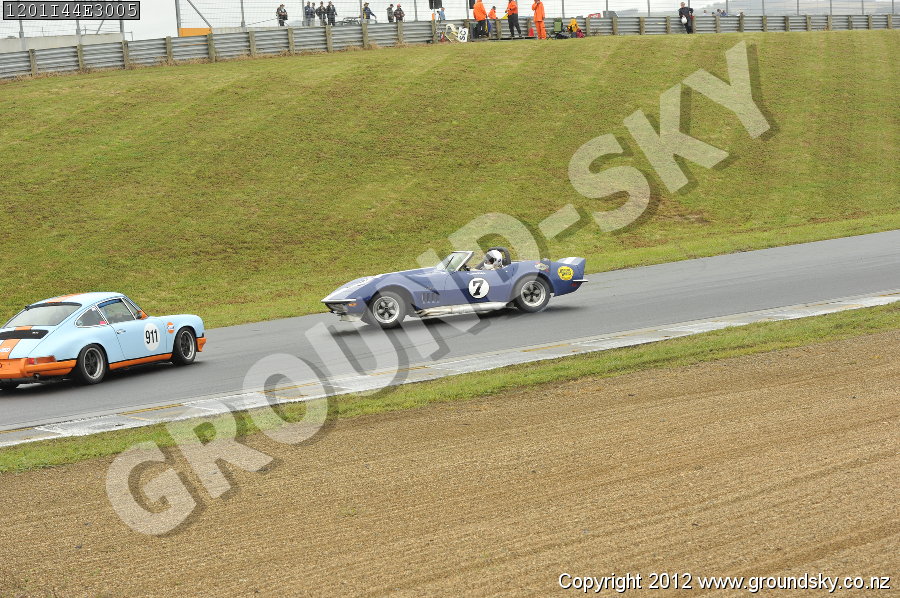 Car No: 7 Tony Roberts - Chevrolet Corvette Stingray - Car No: 911 Stephen Rasmussen - Porsche 911 ('64-89) RSR - NZ Festival of Motor Racing Week 1 - Pre-1978 Sports, Sports Racing & GTs
