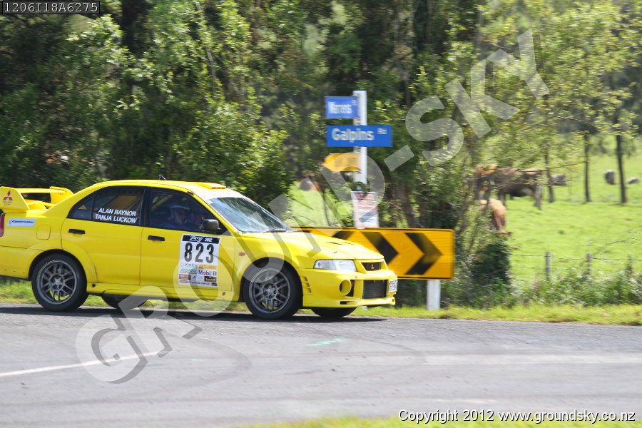 Car No: 823 Alan Raynor and Tanja Luckow - Mitsubishi Lancer Evo 6 - Targa New Zealand 2012 - Special Stage 18
