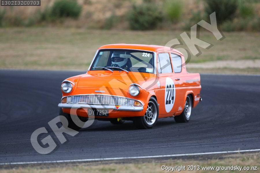 Car No: 224 Dennis Dowling - Ford Anglia 105E - NZ Festival of Motor Racing Week2 - Historic Muscle Cars & Pre 78 Saloons