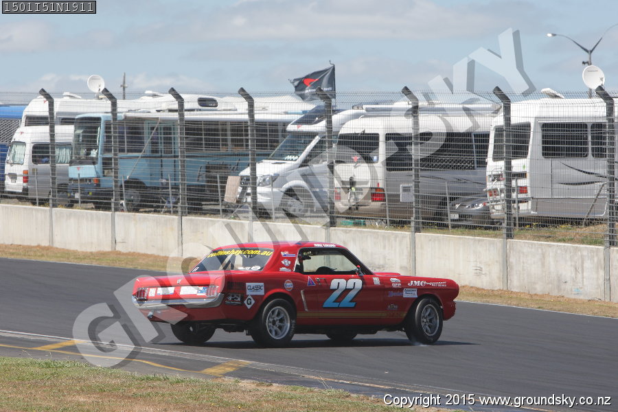 Car No: 22 Mike Collins - Ford Mustang - NZ Festival of Motor Racing 2015 Week 1 - Historic Muscle Cars