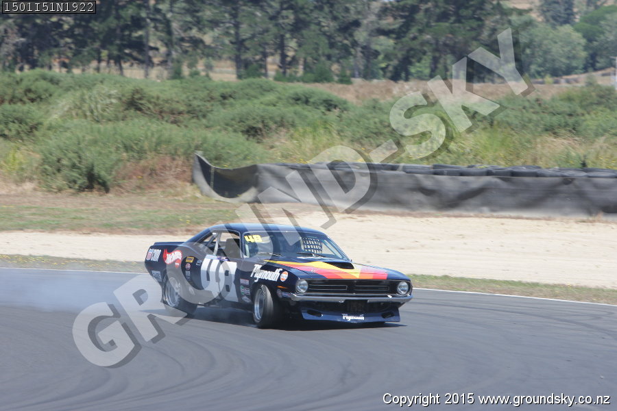 Car No: 48 Keith Sinclair - Plymouth Barracuda - NZ Festival of Motor Racing 2015 Week 1 - Historic Muscle Cars