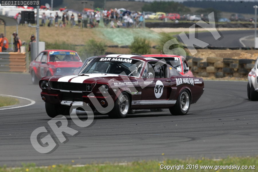 Car No: 22 Neil Tolich - Ford Mustang - Car No: 57 Richard Malam - Ford Mustang - NZ Festival of Motor Racing 2016 Week 1 - Historic Muscle Car