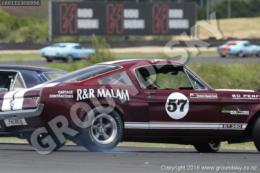 Car No: 22 Neil Tolich - Ford Mustang - Car No: 57 Richard Malam - Ford Mustang - NZ Festival of Motor Racing 2016 Week 1 - Historic Muscle Car